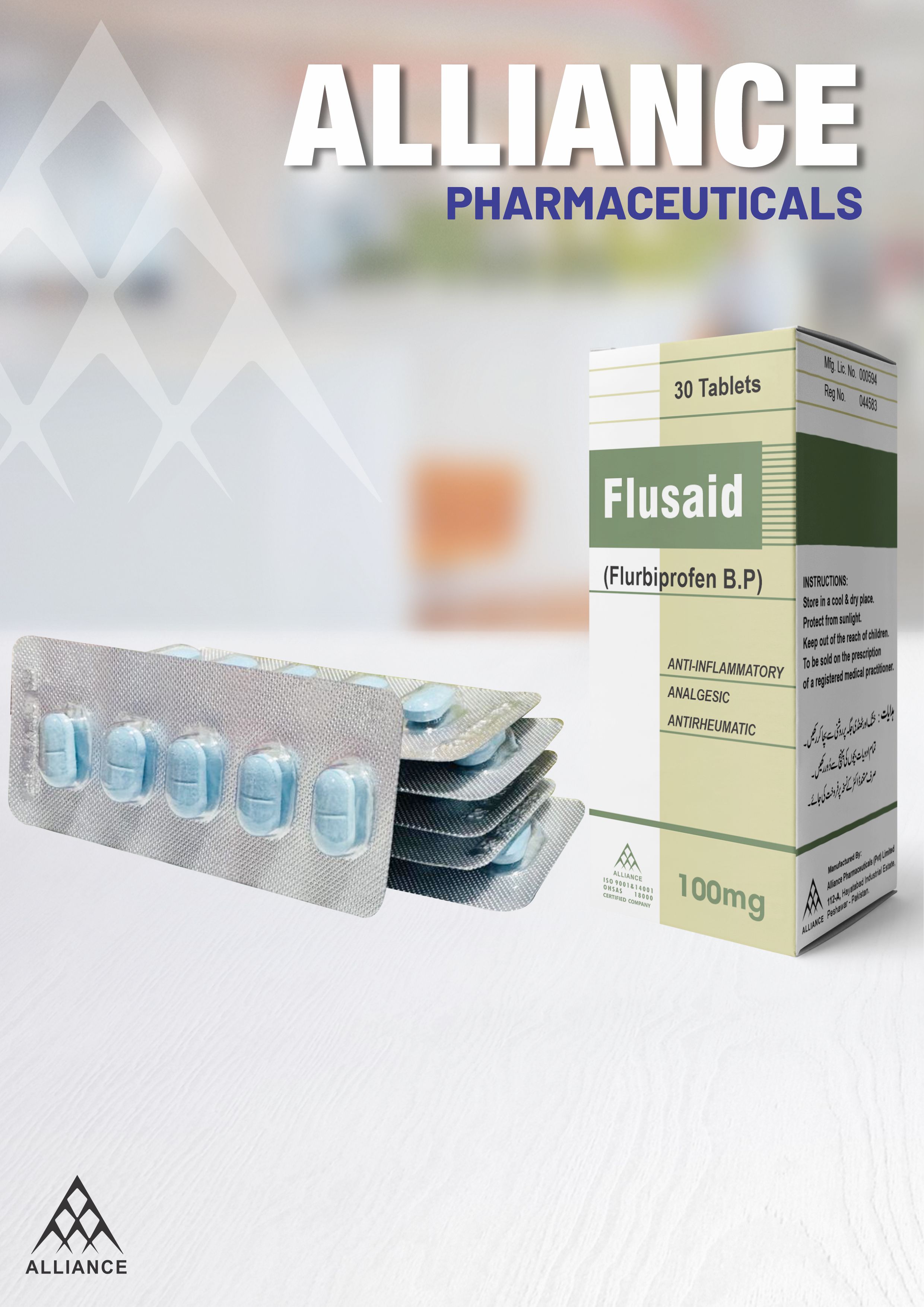 Flusaid® (Flurbiprofen 100 mg) is used for the relief of pain, inflammation, and swelling in conditions such as arthritis, musculoskeletal disorders, dental pain, and other acute or chronic painful conditions.